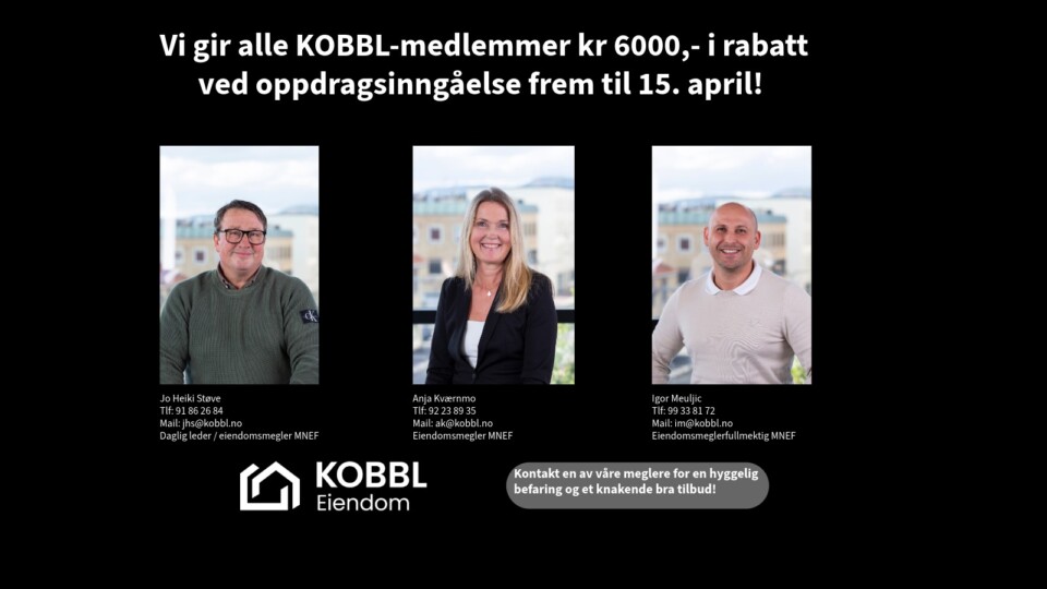 Selge bolig? Våre eiendomsmeglere kan Kongsvinger! Les mer om KOBBL Eiendom Privat For deg som er, eller ønsker å bli medlem. Styret For deg som har styreverv i sameie eller borettslag. Forkjøpsrett Boliger med forkjøpsrett Forkjøpsrett Meld skade Selge bolig? Dobbel medlemsrabatt hos KOBBL Eiendom! FRITT MEGLERVALG Endring i fakturering av medlemskontingent til medeiere i borettslag Se alle våre nyheter God forretningsførsel= Et trygt og godt bomiljø Vårt hovedmål er å bidra til rasjonell og effektiv drift av borettslag og sameier. Les mer om forretningsførsel Les mer her! Vår samfunnsrolle KOBBL har skapt trygge hjem siden 1945. Les mer om vår samfunnsrolle