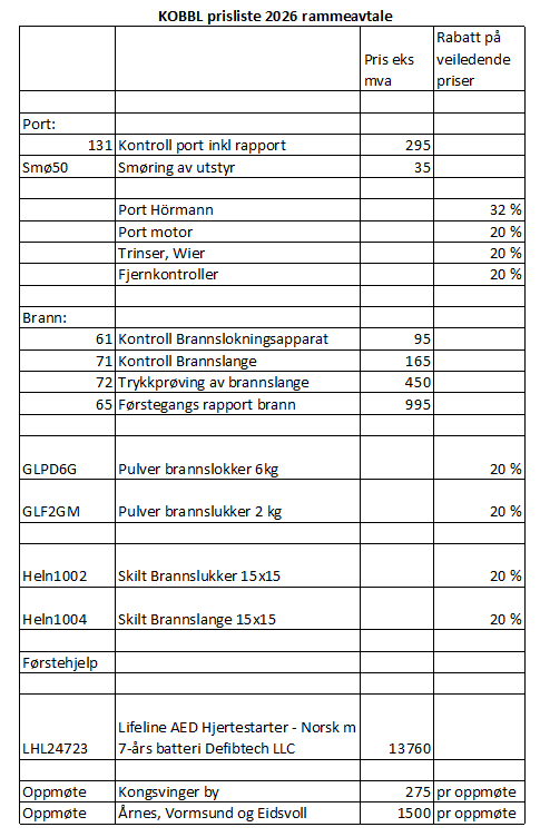 - Prisene blir årlig KPI regulert ift. tabell 11117 «tjenester hvor arbeidskraft dominerer»
